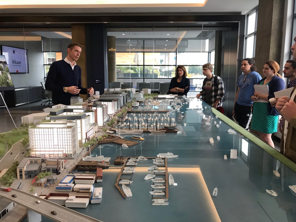 Today, students had the exceptional opportunity to get a behind the scenes tour of DC’s exciting new project, The Wharf. Matt Steenhoek, Vice President of Development of PN Hoffman, answered questions about construction, design and placemaking. In addition, students had another space to analyze using the Gehl Public Life Tools.